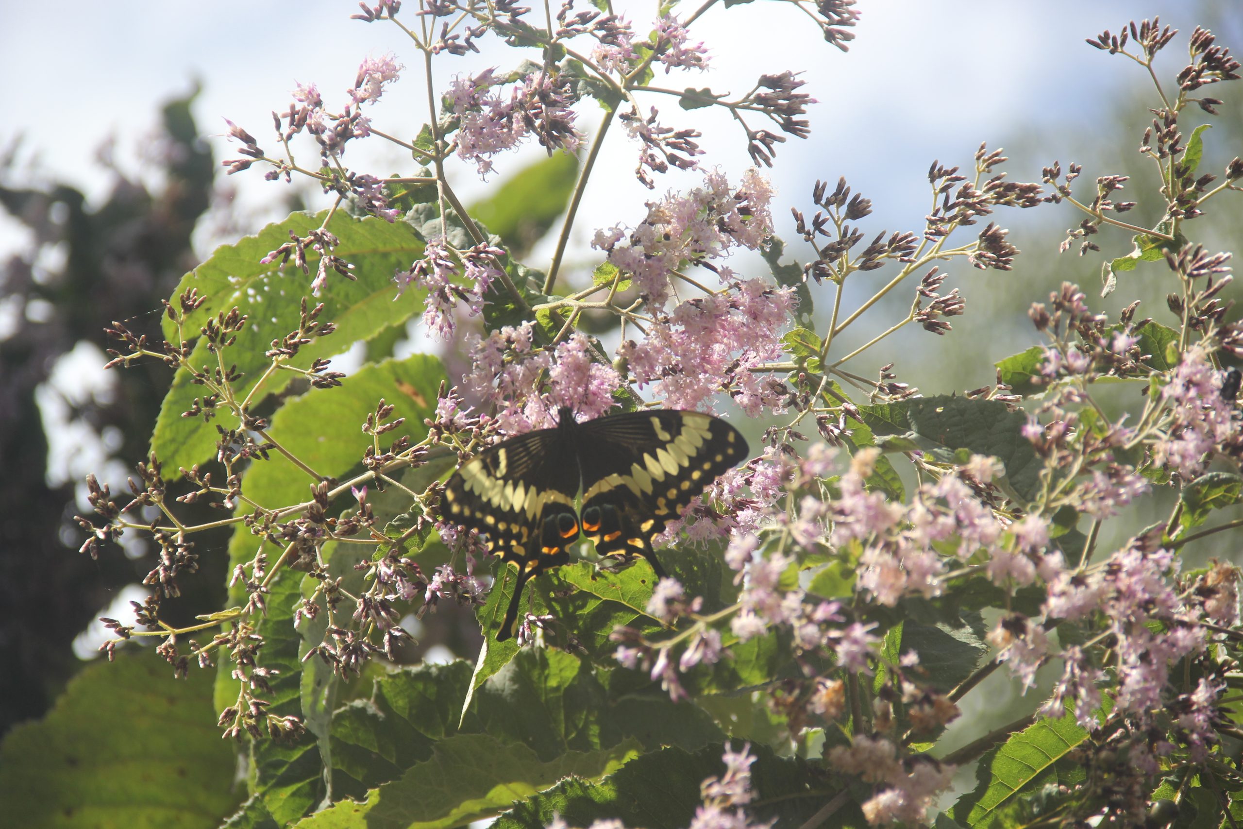 Every butterfly here has its role. Monarchs and other orange-washed wanderers glide with unhurried grace, largely ignored by birds that have learned to avoid their bitter taste. As caterpillars, they feed on toxin-rich vines and carry those chemical defences into adulthood, a lesson the forest never forgets. Even their choice of flower reflects the precision of their world. Vernonia bushes, crowned with mauve florets, bloom along the tracks where the sun breaks through, offering convenient refuelling stations. Croton’s golden flowers bloom at shoulder height for bees and butterflies alike, while Tabernaemontana, with its spiral white blooms, reserves its scent for night, when hawk-moths hover like ghosts over the forest floor.
