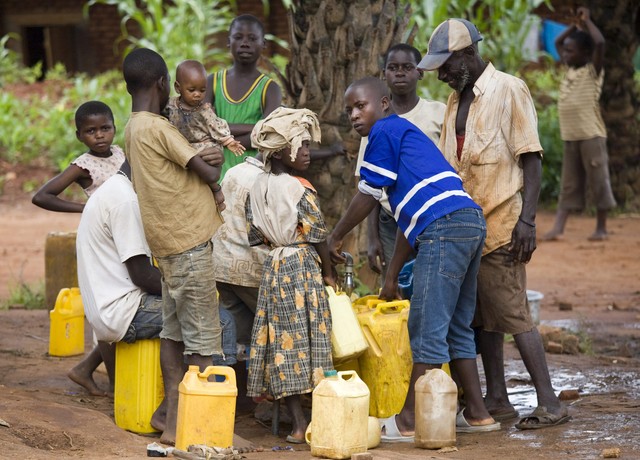 As she emerges, the birds are already chirping cheerfully. She joins her mother by the open fire, where a yellow plastic bucket, holding their precious water supply, is nearly empty. Kachiki pours a small amount into a plastic basin, washes her hands, and accepts a steaming mug of fragrant tea. She drinks quickly, slips into her school uniform, grabs the now-empty bucket, and hurries to join other children heading to the nearby spring. Each carries a 20-liter bucket, chatting along the way, but keeping pace, mindful of the long walk ahead. School awaits, and the burden of water collection is a daily necessity they cannot escape. Though Kachiki, now ten, is strong and fit, the younger children will need to stop and rest several times before they make it.